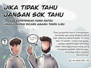 “Dan janganlah kamu mengatakan terhadapa apa yang disebut-sebut oleh lidahmu secara dusta ‘ini halal dan ini haram’, untuk mengada-adakan kebohongan terhadap Allah. Sesungguhnya orang yang mengada-adakan kebohongan terhadap Allah tiadalah beruntung.” (QS. An-Nahl: 116)