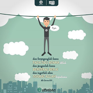 Dan berpeganglah kamu semuanya kepada tali (agama) Allah, dan janganlah kamu bercerai-berai, dan ingatlah akan nikmat Allah kepadamu ketika dahulu (masa Jahiliyah) bermusuh-musuhan, maka Allah mempersatukan hatimu, lalu menjadilah kamu karena nikmat Allah orang-orang  yang bersaudara. (QS Ali Imran:103)