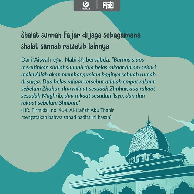 “Barang siapa mengerjakan shalat sunnah (rawatib) dalam sehari-semalam sebanyak 12 rakaat, maka karena sebab amalan tersebut, ia akan dibangun sebuah rumah di surga.” (HR. Muslim, no. 728).