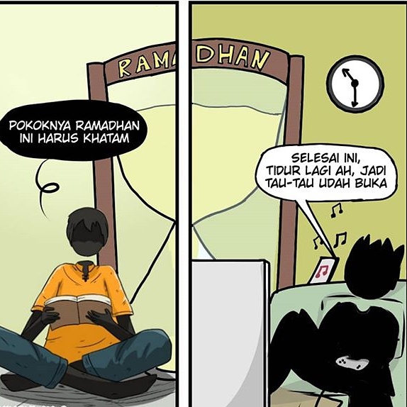 Itu hamba yang menyia-nyiakan waktu Dibulan Ramadhan, Mengisi waktu dengan mengkhatamkan level game, Lebih banyak tidur dan rebahan daripada membaca Qur’an, Bangun-bangun memjelang adzan,