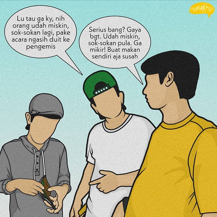 Bersedekah tidak harus berjuta-juta, tidak harus membangun sesuatu, tidak harus memberikan sembako yang banyak. Cukup beberapa Ribu rupiah saja, kalian sudah bisa menolong sesama.
