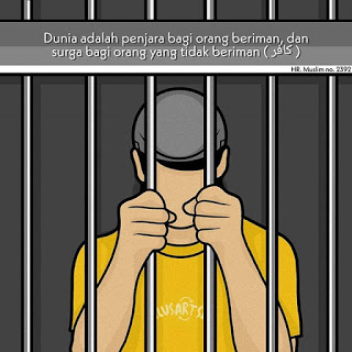 Dunia ini di bandingkan akhirat ibarat orang mencelupkan jarinya kelaut. Air yang tersisa di jarinya ketika di angkat itulah nilai dunia. ( HR. Muslim )